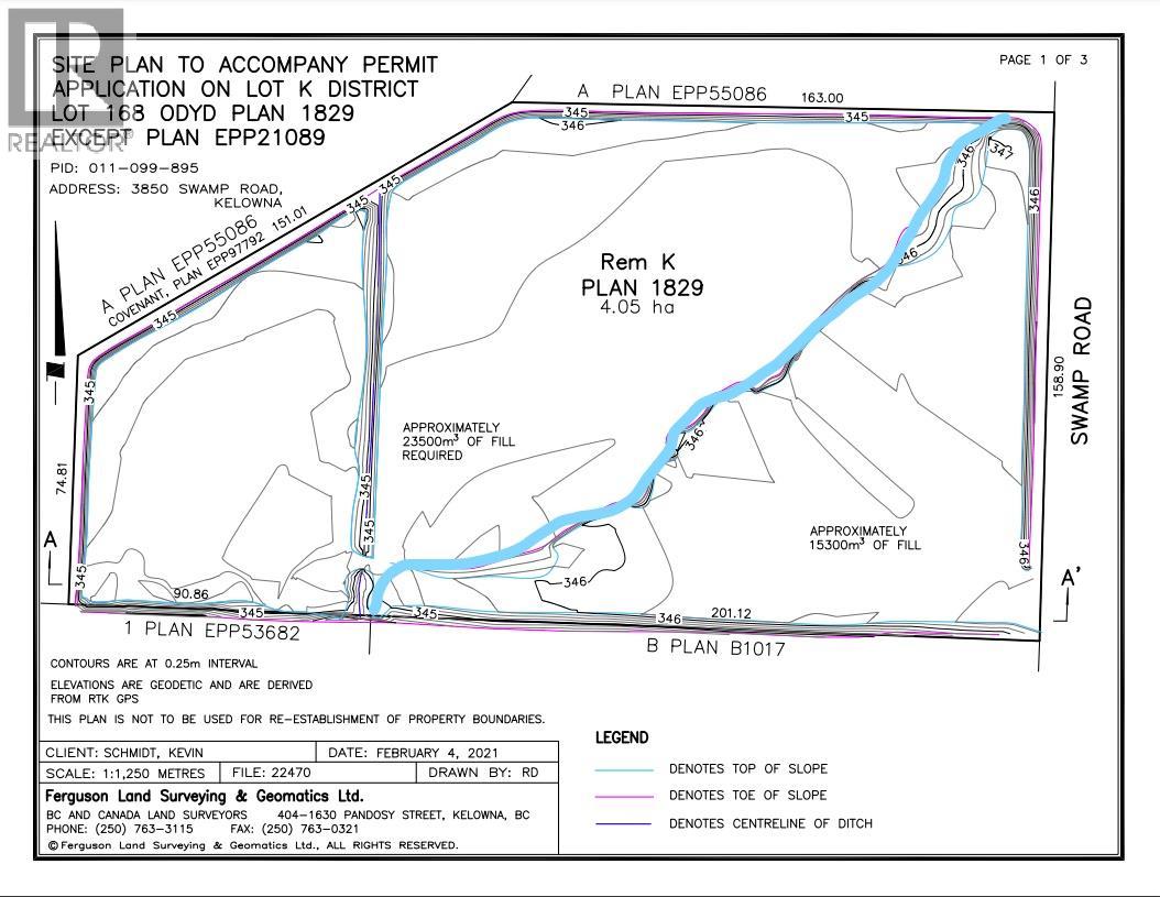 10 ACRES of FLAT ALR Backing and Siding onto the MISSION CREEK GREENWAY, City Parkland and private land! Build your dream home and enjoy rural beauty and privacy yet only minutes drive to all amenities. Potential for Equestrian use, and potential trail rides on the greenway. Historically back property was hay. Centrally located, minutes to H2O centre, recreation trails, golf, schools. Approx one third has approx 1 metre of fill, two thirds more swamp grass and pasture some trees and pond. Water ditched around perimeter and through (see site plan), 6-8' wire fenced on N/W/E sides, partial cross on South border. Property drains into the City of Kelowna ponds, small pond in middle near back. Easy access off Swamp Rd. Water licence in place. Subject to ALR and A1 zoning, city approval, flood plain limitations, requirements and guidelines. GST applicable. Current Farm status from Sellers is Bee farming (however Bee hives not included). Central location minutes to H2O, Schools, Orchard Park and more! (id:4069)